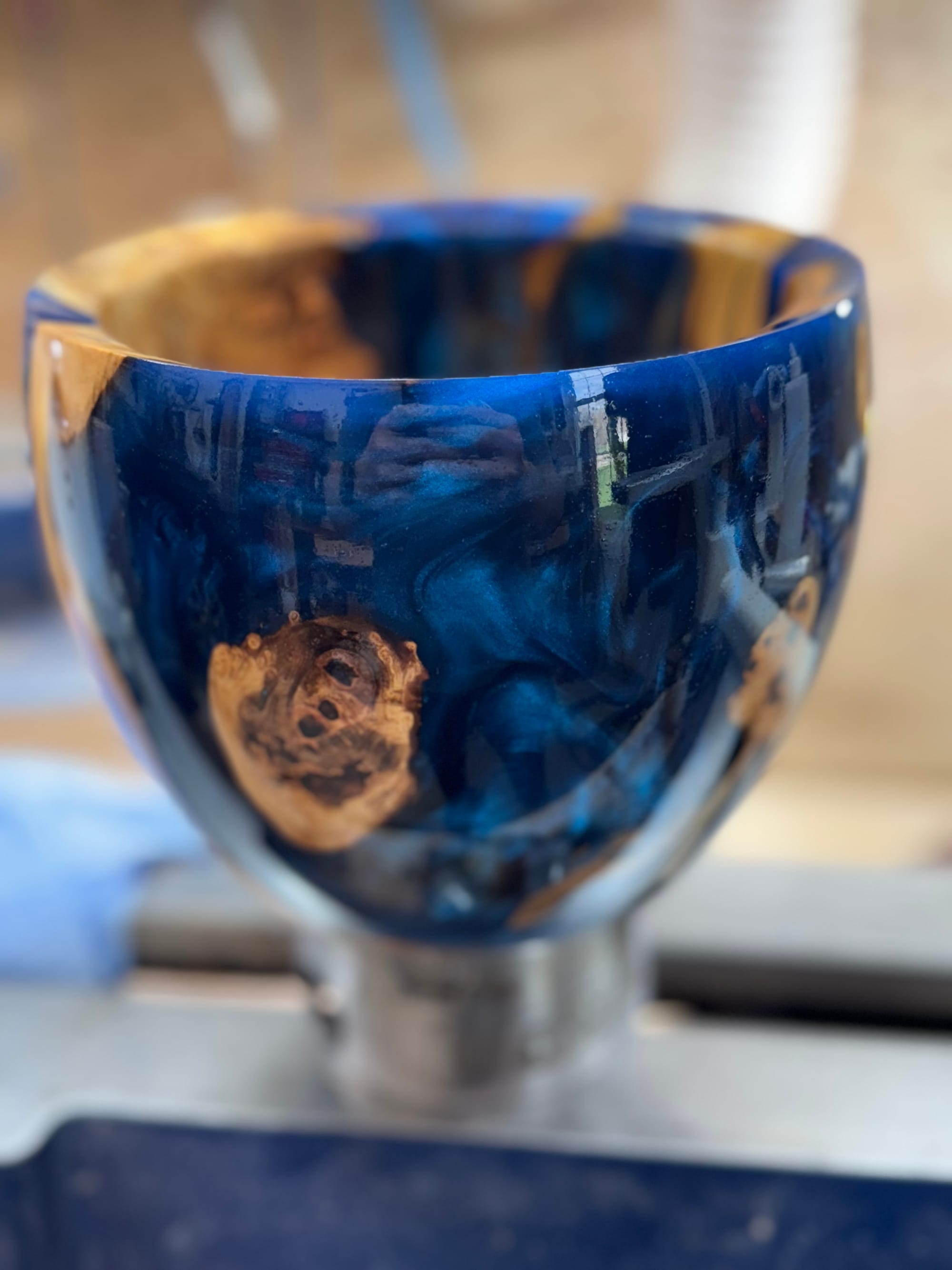 I didn't put this piece up for sale as it was my first resin bowl. It sits in my home office along with a few of my other favorite items that I've made.